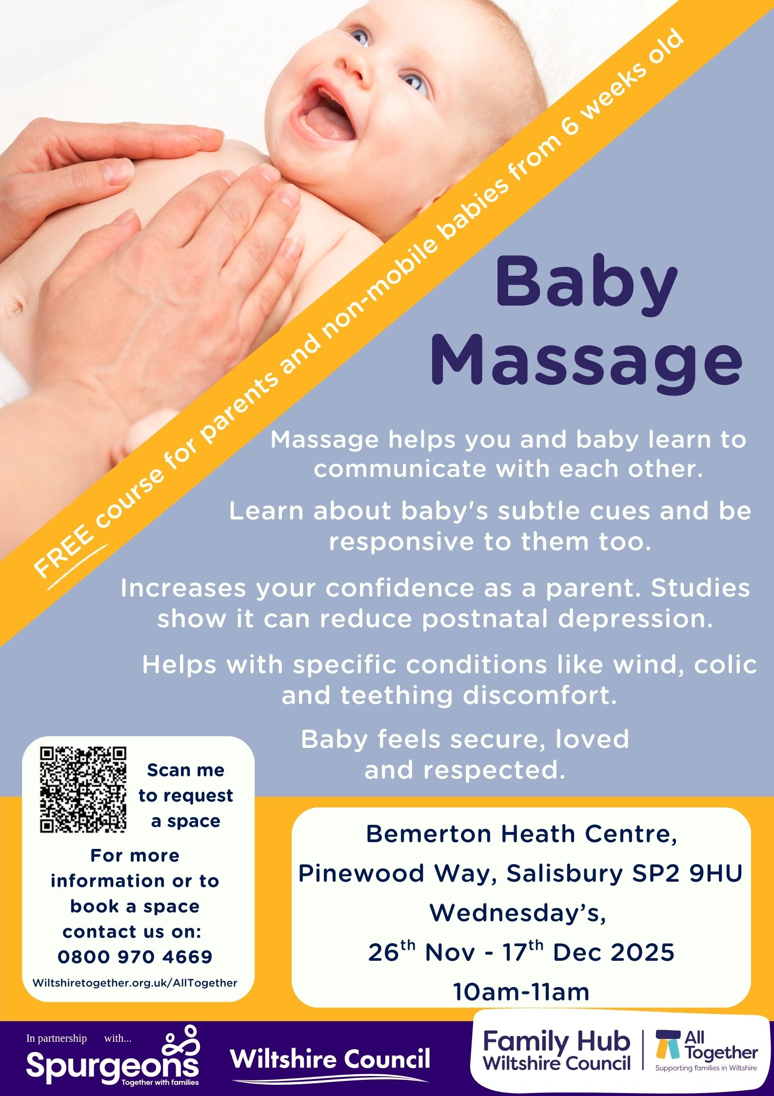 Baby Massage | Thursdays 6th -27th Nov | Baby Massage | Booking Essential | 0-2 years | Salisbury | Poster |